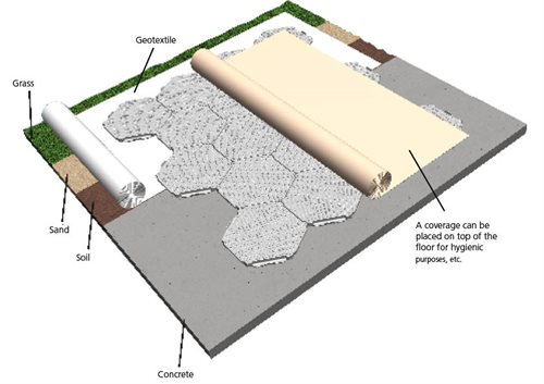 Geotekstil ispod štiti pločice od prljavštine na mekim podlogama poput trave, pijeska ili zemlje.