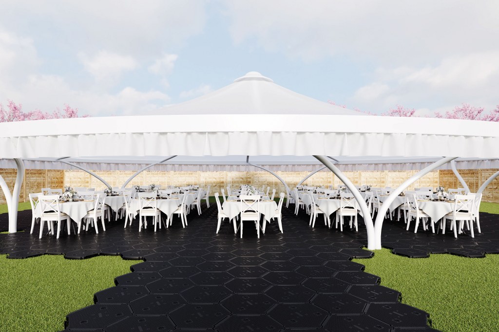 BERGO SOLID izrađen je od čvrste plastike (HDPE), razvijene za UN-ova izvanredna područja. Njegova fleksibilnost i čvrstoća čine ove podne zaštitne pločice savršenima za prodajne jedinice, paviljone, pa čak i za izgradnju privremenih cesta na kojima teška vozila mogu raditi. Čak i kada su u pitanju manifestacije, kampiranje i kao zaštitna površina, BERGO SOLID je optimalan pod.